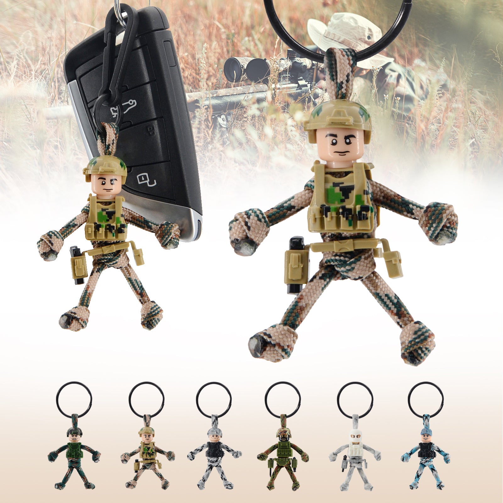 Keychain for Motorcycles, Scooters, Cars, Mopeds, Backpacks, Customize Military Cool Soldier Camo Gifts